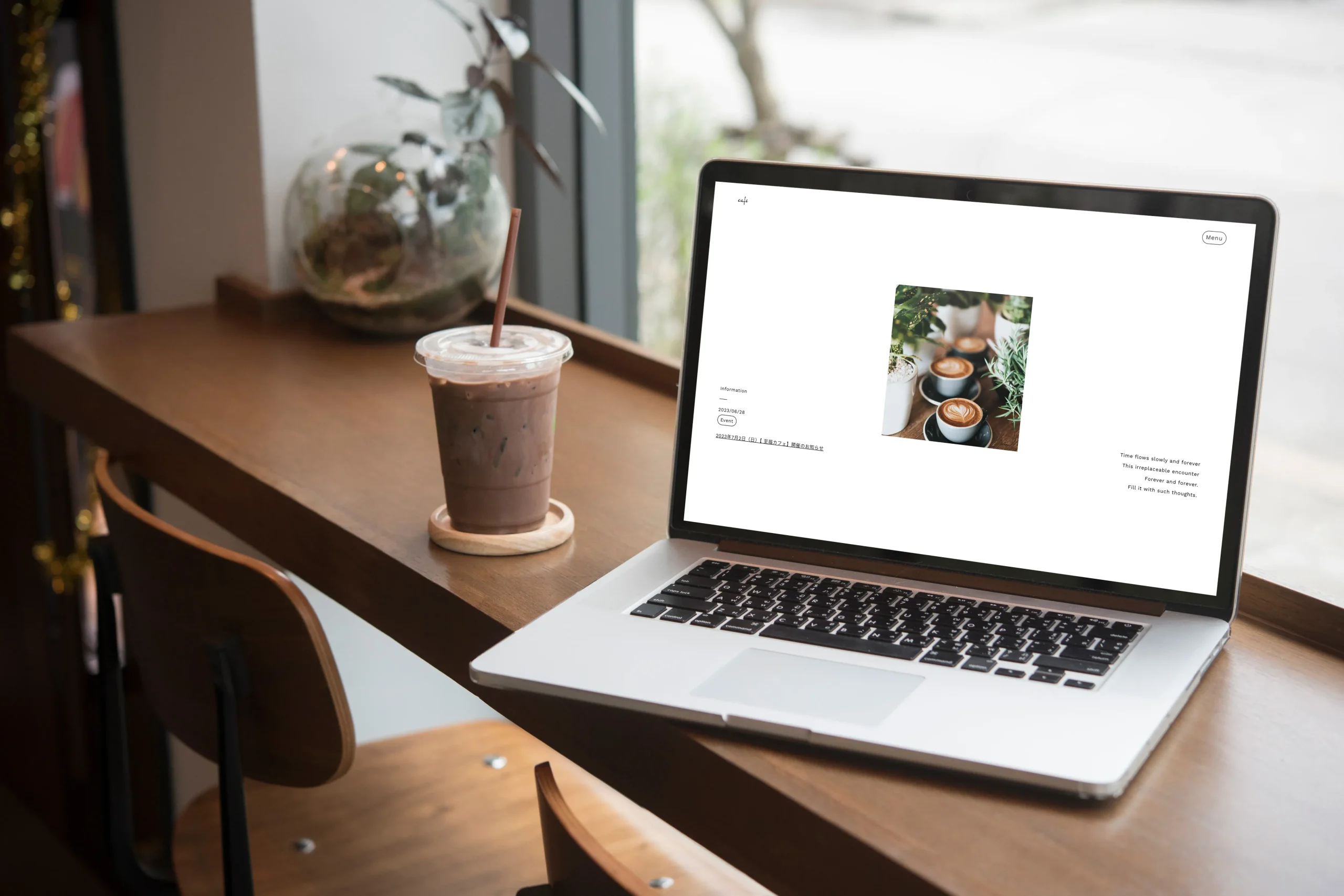 Vellichor-CaféのWebサイト制作しました。ミニマルデザインでフォントは全体的に細めのフォントを使用しています。パララックスやアニメーションを組み合わせて、テキストやボタンにマウスを合わせた時にアニメーションが入ったり、画像がふわっと表示されるよう工夫しました。